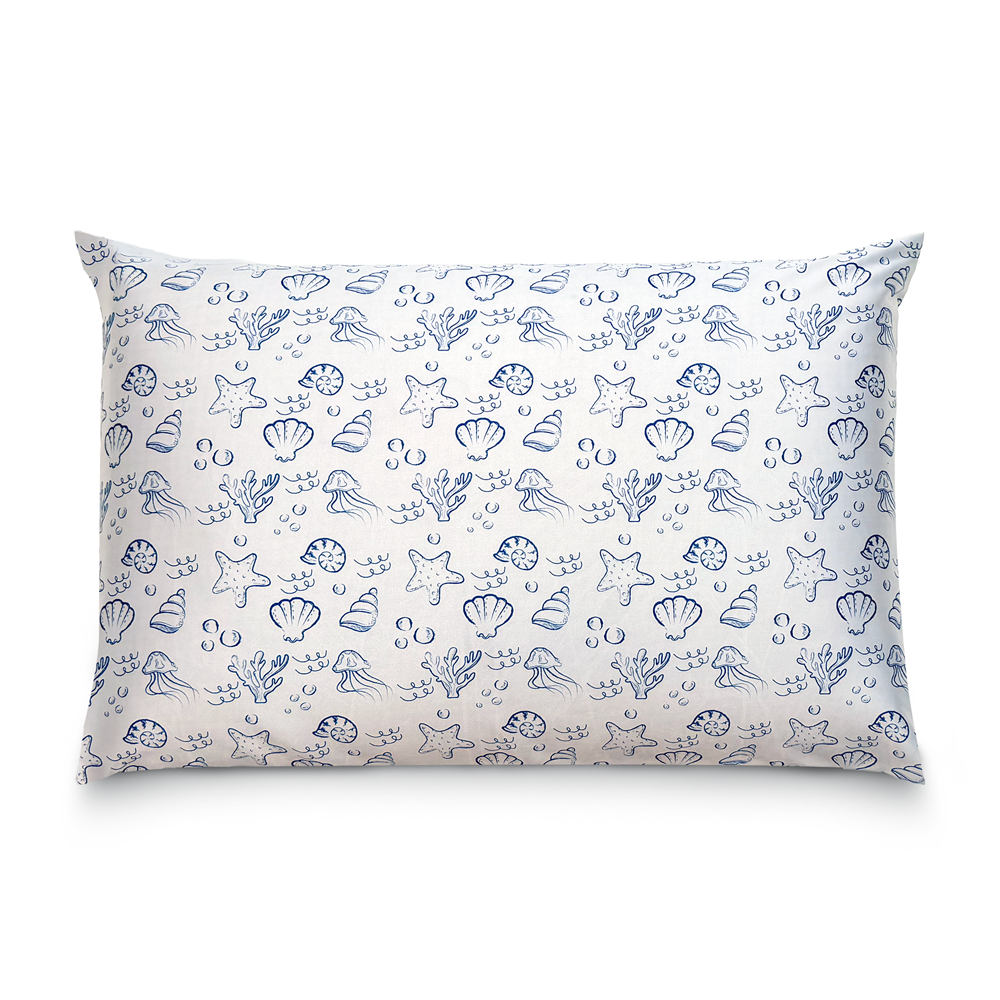 Fronha de Cetim Antifrizz Pérolas do Mar - Branca com Azul - Super Cacheada