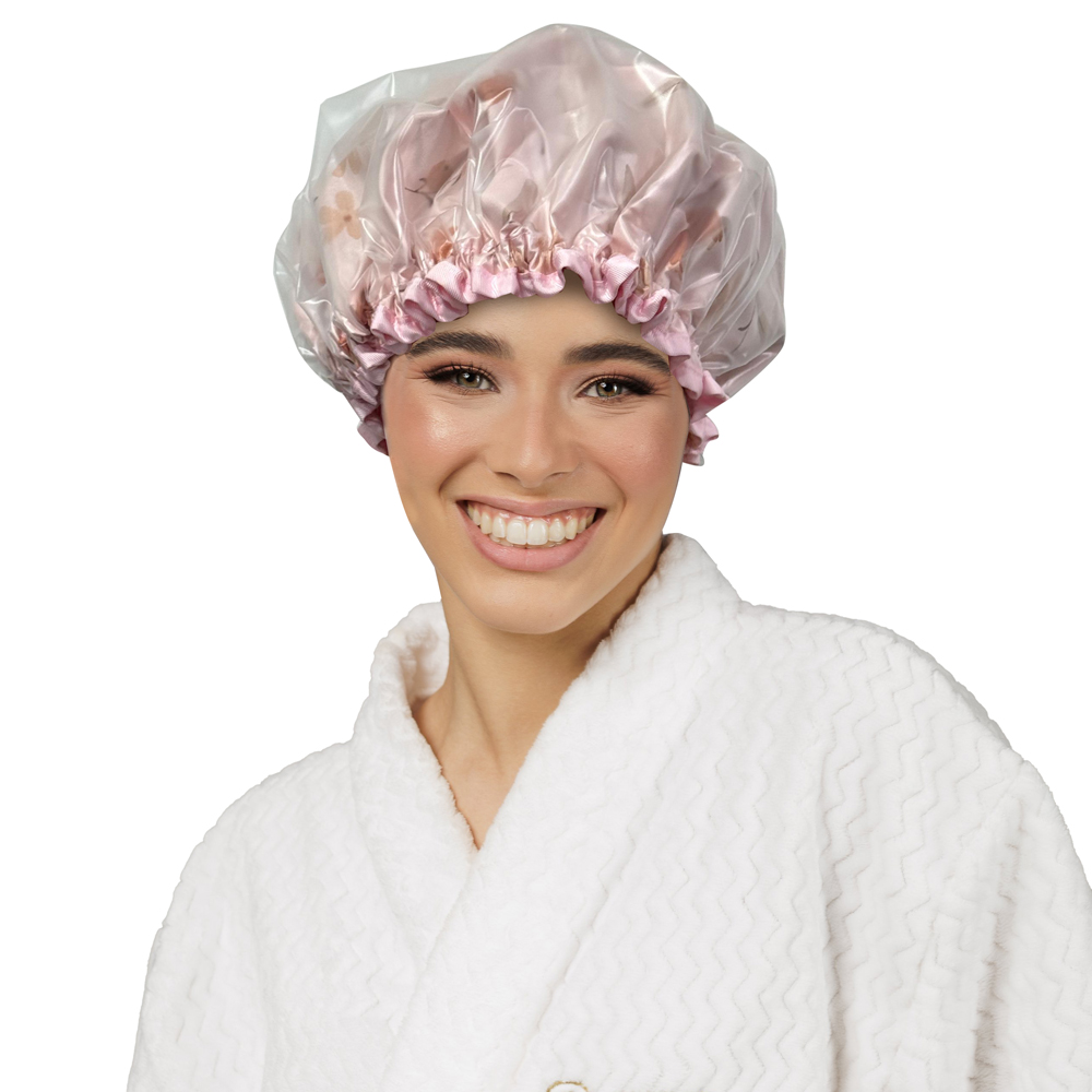 Na função Touca de Banho, o pvc maleável impermeável realiza a vedação e protege seu cabelo da umidade e respingos de água, enquanto o cetim na parte interna garante todo cuidado e proteção aos fios.