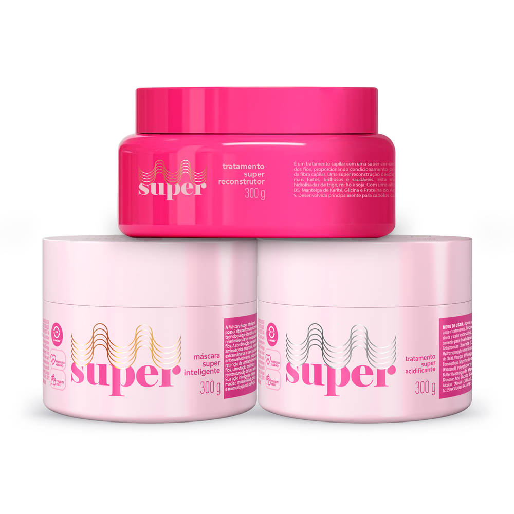 Modo de Usar: Após a higienização dos fios, com o cabelo desembaraçado, aplique o Tratamento Super Reconstrutor. Massageie por 5 à 15 minutos. Após a massagem, enxágue. Utilize uma vez por semana.